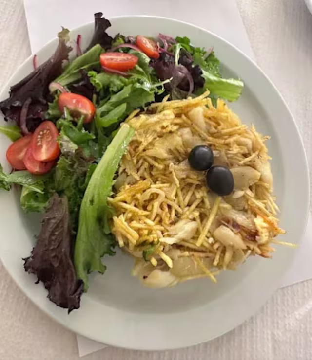 - Cod fish cooked with onion and potato stick.