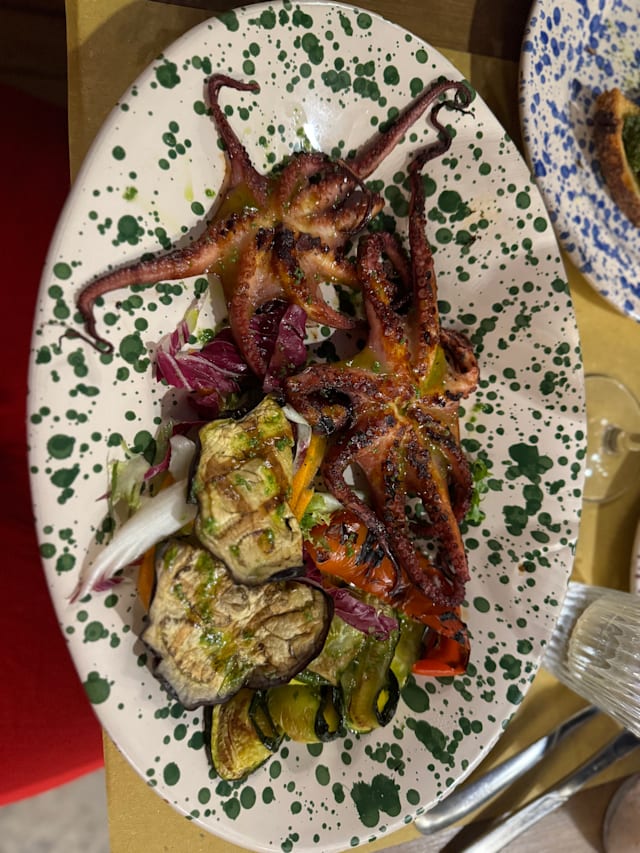 10/10A restaurant with a modern flavor, small but with a trendy, modern and very casual welcome. Jazz music and impeccable cuisine. Don't miss the anchovy pie with aubergines and the orecchiette with octopus ragu. A delight for the palate. Excellent wines by glass. Friendly and nice staff and very reasonable price.