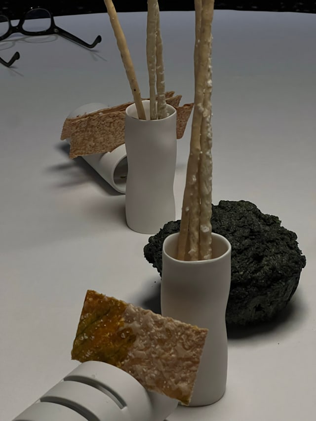 Cotta sui “cutulisci”, aria di conchiglie acidulata, sugo ristretto e pane al pomodoro