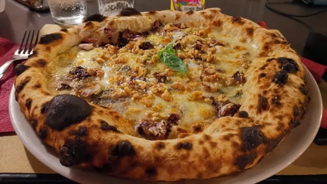 Mozzarella fior di latte, radicchio, gorgonzola, noci, miele, olio evo