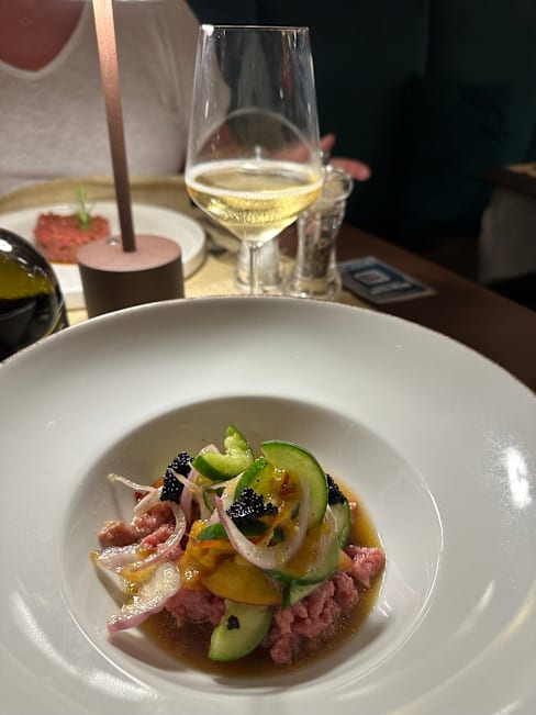 10/10The food and the wine were amazing, recommended! Just a small point: (We had a 50% discount on food, so the price that I will report is full, without discount applied.) We were charged for the wrong meat (9€/h) instead of (8€/h) that on 1,45kg makes a difference of almost 15€ + we were charged for the water that was brought to us without having asked it, so we thought it was complementary (water was not in the bottle, just in glass decanter). Overall with the 50% discount it wasn’t much of an issue (around 10€ more than what we should have paid) but if someone pays full price double check the meat on the bill.