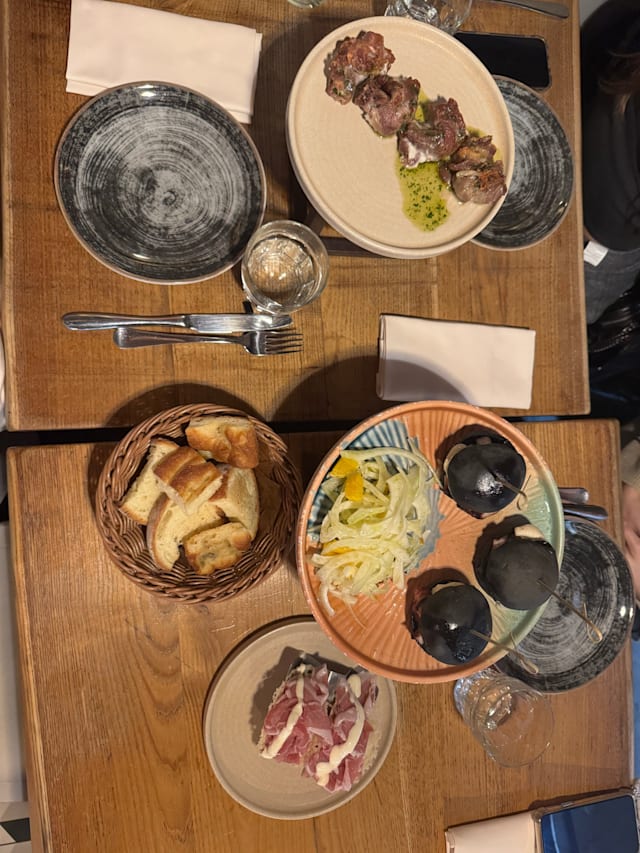 6/10Too complicated menu. small portions (cheese plate contains 5 pieces of local cheese 1cm*1cm - 7 euro. Analcolico Cocktails not much interesting / small glasses. Asked for the table outside , the host continued to bring me inside telling that my friend who was already waiting asked for the table inside, in fact the friend told that never asked for it, just was brought inside and would like to have place outside too. A bit confused service