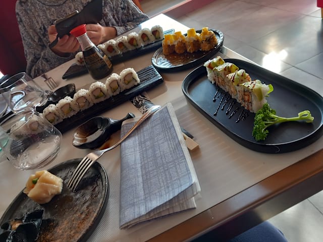 9/10The all you can eat lunch menu offers less options than nearby competitors but I find the quality and presentation of the food better. The worn seats toward the front should be substituted with the not so worn in ones from the back of the restaurant.