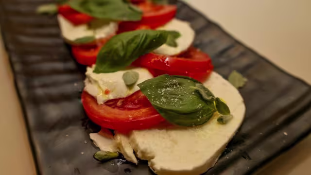 - Mozzarella di bufala, rúcula, serrano, parmesano, vinagre balsámico