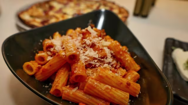 - Pasta, pesto de rúcula, nueces, y grana padano