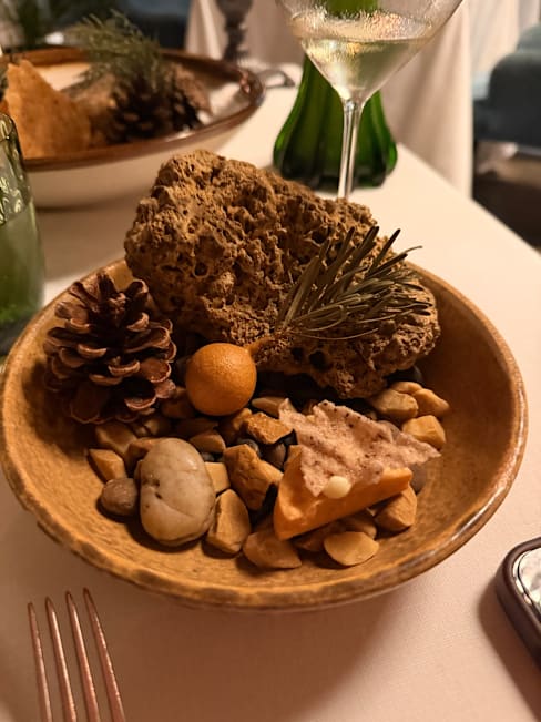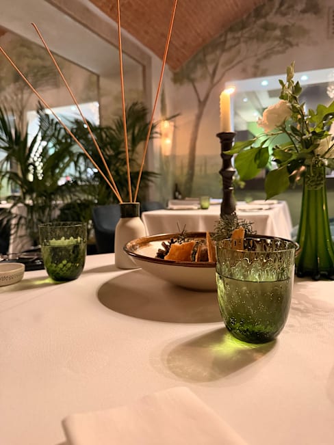 9.5/10The restaurant is by the river, the blue atmosphere has a feeling of entering a forest, the food is creative and tasty, well deserved one Michelin star and Condé Nast Traveller list, I will be back here and the overall service was excellent. It's worth mentioning though that the sommelier was very unfriendly, not pronouncing the word correctly when I tried to enquire what Franciacorta I could recommend, after all the word isn't in English either, and then he acts like he's educating unseasoned rednecks to tell you that proseco isn't champagne! Of course, being a food and wine lover knows the difference between them, and being in rather than France, I enquired at the back of the order if this Franciacorta was dry? He indifferently said that all Franciacorta are dry, and when nearing the end of the dessert, quickly collected the glasses and had no dessert wine pairing suggestions, very unprofessional and impolite.