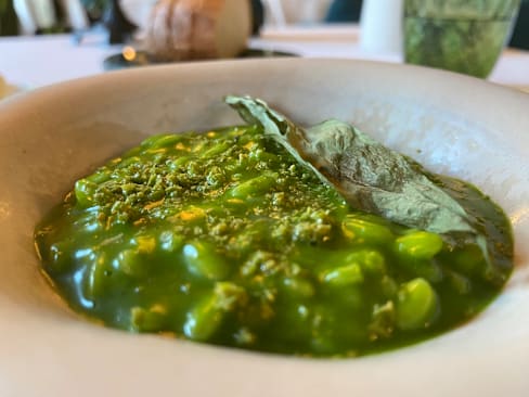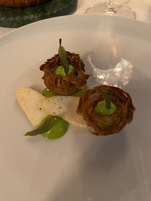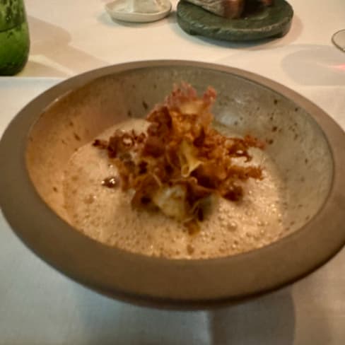 10/10I rarely write reviews, but this newly-opened restaurant deserves all the attention it can get. Grab your reservations now, before more people realize that Saporium Firenze is an essential dining experience, regardless of whether you’re local or visiting. When so much care goes into the color palette, the lighting, and the dimension and flow of the space, one might be forgiven for wondering if the food will live up to the flawless aesthetic. Thankfully, the menu at Saporium Firenze is not only delicious, but is perfectly in tune with the visual storytelling. From the moment you step in the door, cool forest greens and white linens hint at the notes of fir and loam that inform so much of the menu. Ingredients have been harvested from the restaurant’s farm outside Siena, from dairy cows pampered in pastures long past their milk-producing years, from the trees and wild herbs outside the city, and even from the smoke in the unique charcoal that the chef sources from a nearby forest. Many are then elevated with lacto-fermentation, building layers of complex flavor even before they’re touched by heat. Saporium Firenze is fine dining at its finest, but without ever losing its connection to the land. From a kimchi fritter with fir tree sprig that was the most Pacific Northwest thing I’ve ever tasted (especially since we’re in Tuscany) to pigeon from Greve in Chanti stuffed into agnolotti with a lacto-fermented white onion sauce, each ingredient tasted like the best version of itself. I can give no higher review for the food and the experience, although I must also thank the chef and the staff for their impeccable hospitality and for the opportunity to go full food nerd with them. The staff clearly loves the menu as much as the chef does. Finally, their miniature sourdough loaf is a marvel, with a perfectly blistered crust and an airy crumb—they get every detail right. If you’ve read this far and you’re searching for a world-class tasting menu, don’t waste any more time—this is your next meal. Don’t worry about language barriers. While I would have been happy hacking my way through the experience with my terrible Italian, the staff is fluently multi-lingual. Also, a special shout out to the dishies and the back of house, who have maintained the beauty and integrity of many delicate serving dishes.
