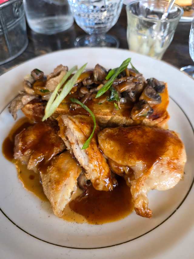 (HORS MENU) Côte de veau de 300g rôtie au beurre, poêlée de champignons en persillade, frites maison, jus court.