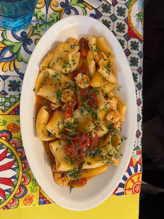 - (alle cozze, vongole, ciliegino, aglio e mollica lavorata)