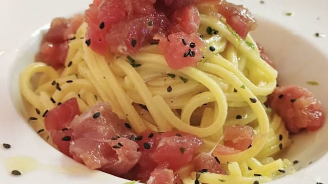 Tagliolini alla siracusana e mollica di panko abbrustolita