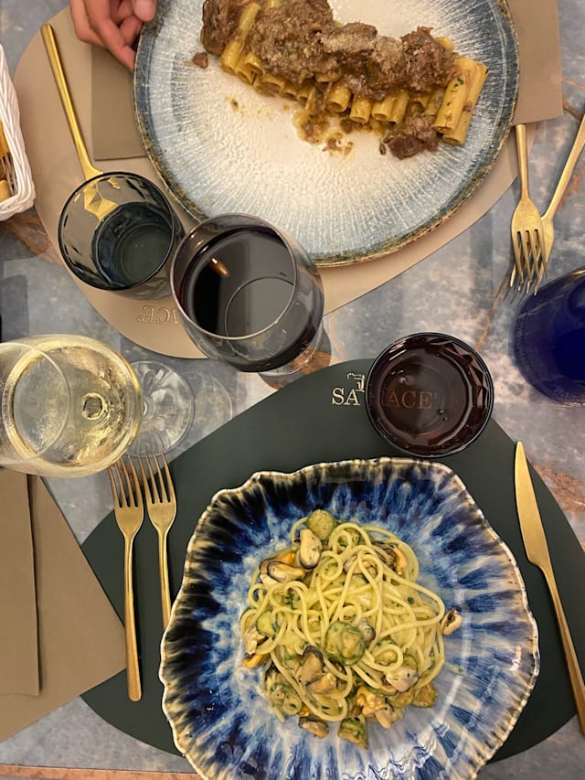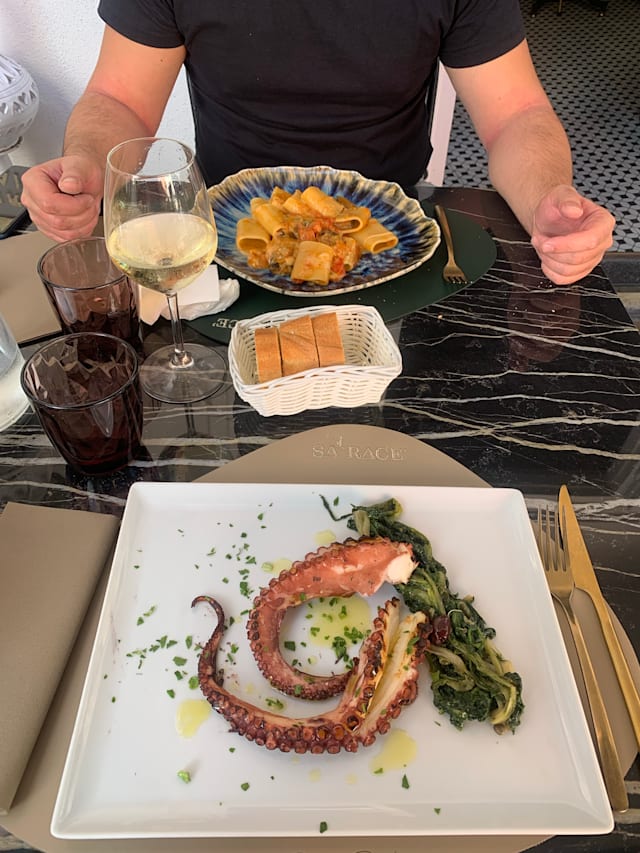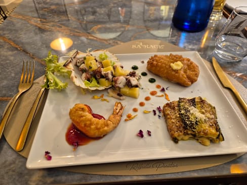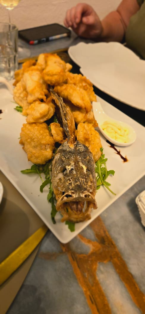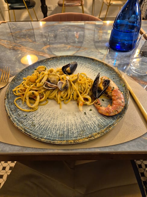 10/10+2The moment we stepped into this place, we knew we would be having a great dinner experience. The decor is highly curated and the ambience was perfect. We mentioned that we were on our honeymoon and we were treated like royalty and they genuinely were so excited for us. A discount was available when we booked through the Fork and they honoured it, no questions asked! Because we had the discount, we went all out and took the servers recommendations for wine, starter and main and they didn’t not disappoint. We had a nice white wine for 38E and had the Saraceno seafood starters which had octopus and potato salad, fried prawns with lemon jelly sauce, fried sardines with cheese, fried cod fish with lemon aoli and stuffed cuddlefish with spinach and cheese. Everything was delicious! The lobster linguini was out of this world amazing and the rocher style chocolate dessert was perfect. We were even treated to some limoncello! Overall #1 best meal we had in Ischia, hands down.