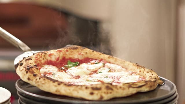 Pizza fritta passata in forno, pomodoro, fior di latte, basilico e parmigiano