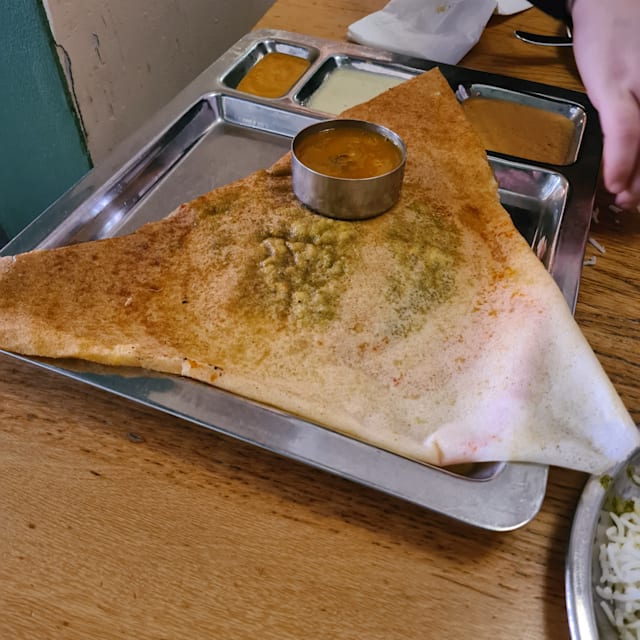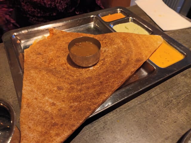 7/10I was in January at this place and it was really awesome i really loved it and i could taste South India. Very good and chef came from Tamil Nadu.it was perfection. Now i was back in March and instantly noticed something changed. Maybe a new owner and i saw them and they were not really South Indian. But its all about the food of-course ans owner doesn’t have to make a difference. A other chef does . The Massala Dosa was different tast fillingYellow Potatto Sambar was very thick and very salty. I asked the waitress if there was a different chef and she said yes. That was the first thing i noticed. I ordered Itly and Massala Dosa. Massala tea was very good ans surving people were also very nice. Other thing i could not tip the waiters . I loved to do this because they were so kind. Nice staff is difficult nowedays. You should a different payment system so tips can go to staff based an many hours they work. Hope next time it will be better