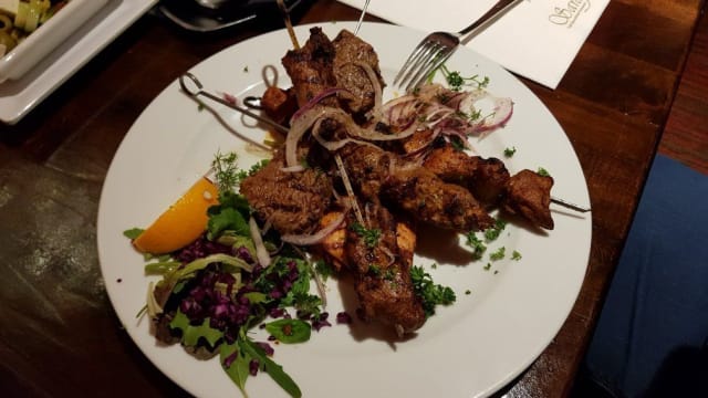 Lamshaas, kalfsbiefstuk, Adana kebab, kipfilet en sis kebab van de grill