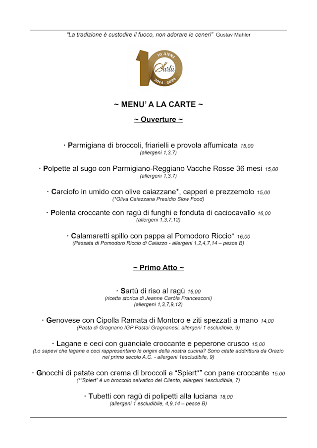 10/10The chef has excellent creativity with combinations of food that awakens the flavors in exciting ways ! Beautiful to see, smell, touch, and taste. An exceptional wine list! The server is very professional and knowledgeable about all things Sartu and very accommodating. She surprised my son in law with a candle in his dessert for his birthday! The music and decor are the classic jazz of Coltrane and Ella Fitzgerald elevating the mood to a special elegance! We will return as often as we can!
