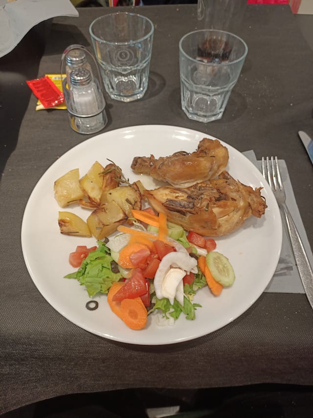 (Grilled chicken fillets served on caesar salad with parmegiano)
