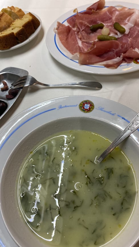 7.5/10Bread soup, to start, was dreadful: absolutely zero flavor. Had to send it back. Cod fritter appetizers were good. Main course veal was sub par. Monkfish and squid main course dishes were good.