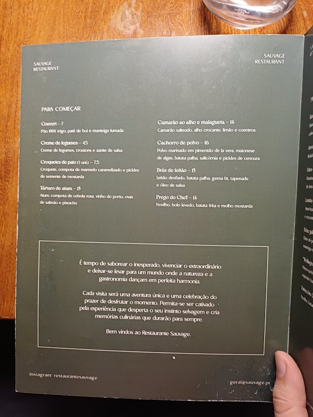10/10We had a great time at Sauvage. Can wholeheartedly recommend the arroz de robalo and the filetes de peixe galo. Edite was our waiter for lunch and was the example of attentive and genuine care. 10/10 would return.