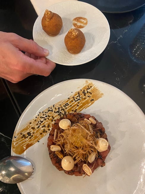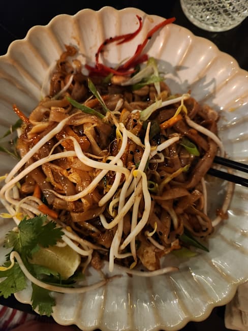 9.5/10Wonderful food. We had 3 apps; seabass Ceviche, duck nigiri, and katsu sando. For our main we shared the shrimp pad thia. Apart from the duck nigiri all were excellent. The duck was interesting and well flavored we just didn't find it worked well on a bed of rice. That said, everything else was excellent. In fact, that Pad Thai is probably one of the best I’ve ever had, from the perfectly cooked shrimp to the fresh flavors and well cooked noodles