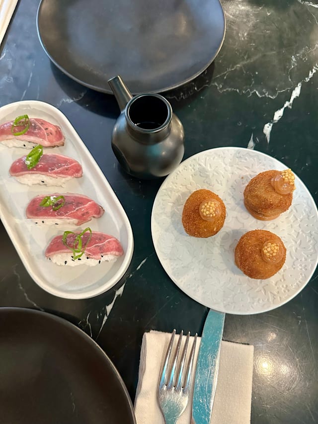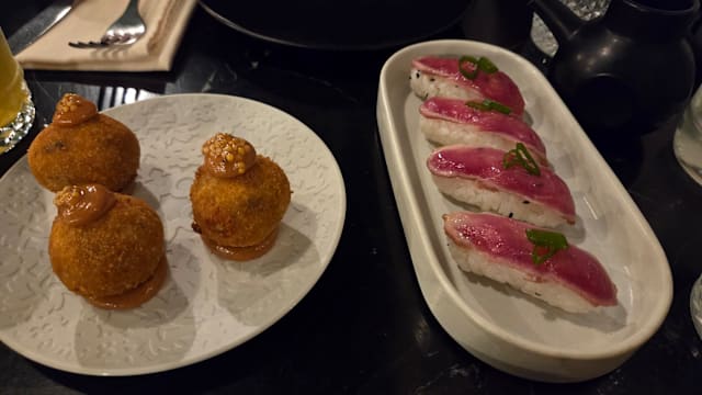 10/10Our entrees were solid, but the duck nigiri starter and chocolate mousse dessert were divine.
