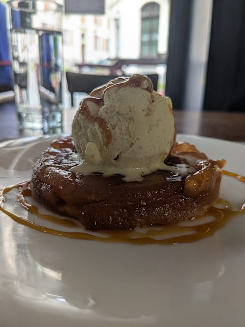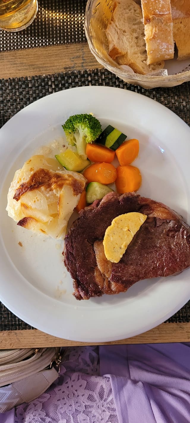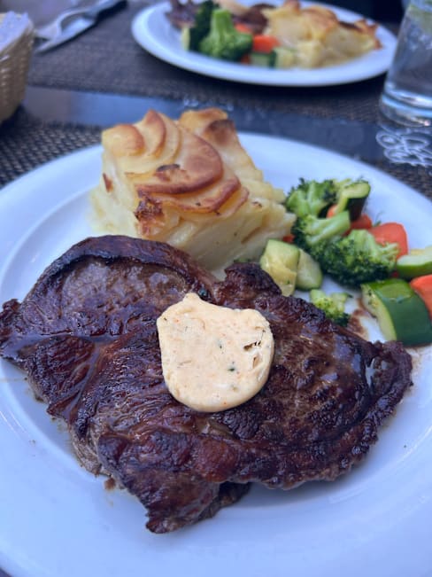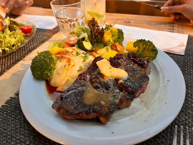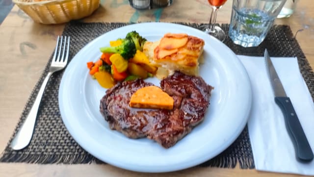9/10Steak tastes great. Enjoyed the dessert also. Raspberry and vanilla ice cream proved a good fit, though a bit more ice cream may be even better. Have to say I love this atmosphere of "restaurant in a community".