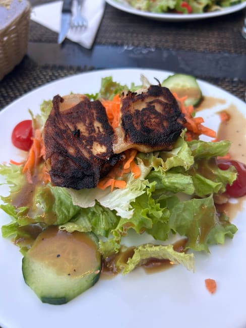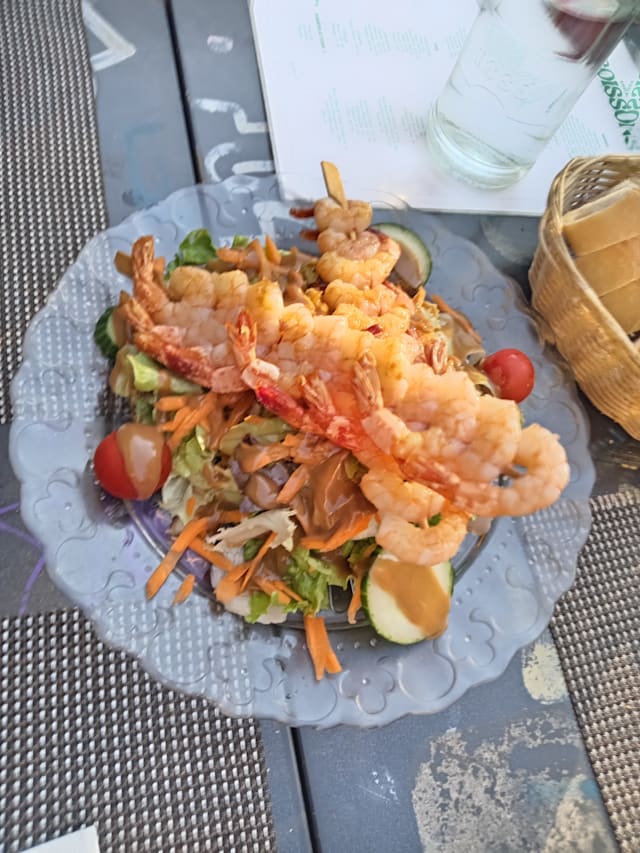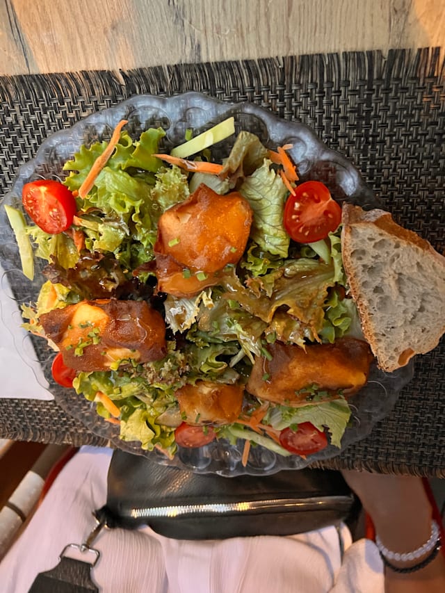 9.5/10I much enjoyed a quiet lunch with a friend at Saveurs et Couleurs. I had the little Chevre salad and crevettes with ginger and both were excellent. Inside it was calm and easy to talk. Recommended.