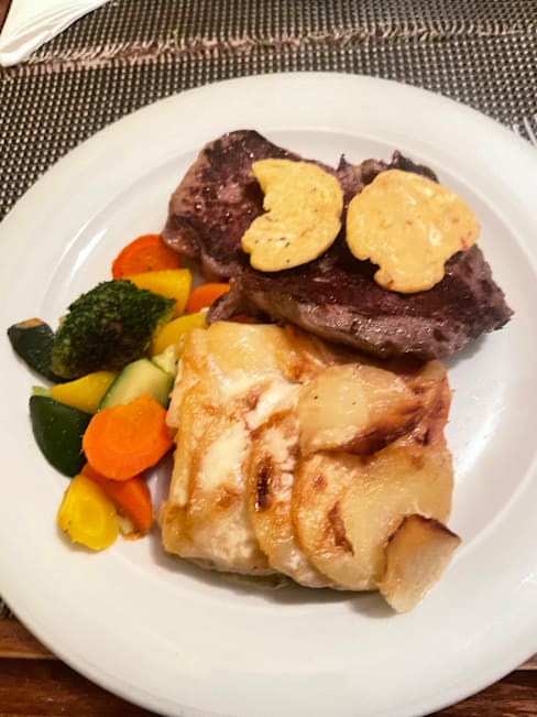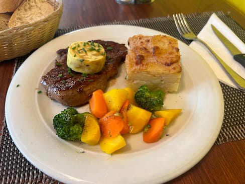 9/10Steak tastes great. Enjoyed the dessert also. Raspberry and vanilla ice cream proved a good fit, though a bit more ice cream may be even better. Have to say I love this atmosphere of "restaurant in a community".