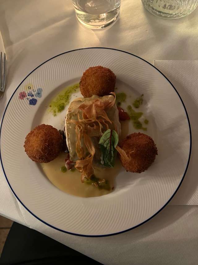 - Torskrygg, citronarancini, brynt smör, tomater, kapris, oliver, vitvinssås, palsternacka