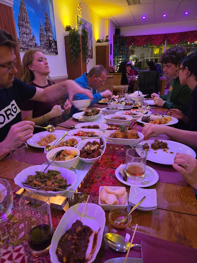 9.5/10Pleasant welcome an terrific Indonesian Rijstafel experience . Freshly prepared and at the right temperature. Very pleasant and attentive service team. Books to capacity so reservations recommended. Thank you we will return when next in town.