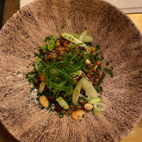 10/10A delicious meal, with imaginative fresh ingredients. We love to eat here in this calm warm setting. The wines are natural, the lighting mellow and there's a happy hum from the other diners.