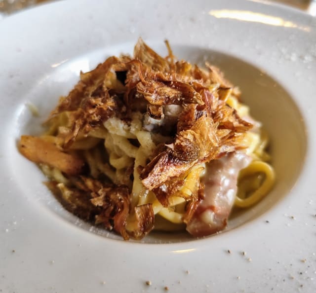 10/10Food and service were amazing! We ate inside and it was really cozy. They have menus in Italian, English and Spanish, so everything is clear. Roman cuisine with a modern twist.