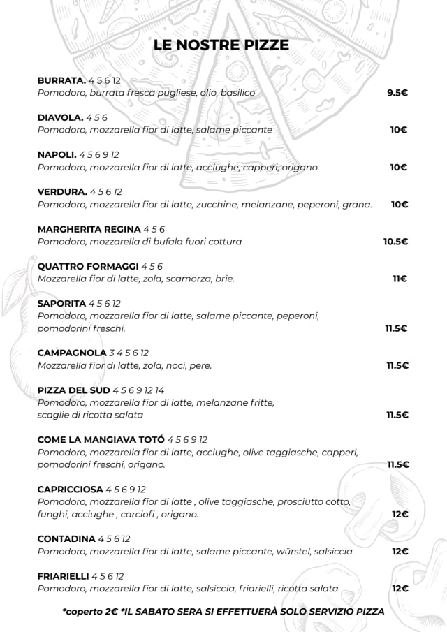 Il sabato sera é attivo solo il servizio pizzeria