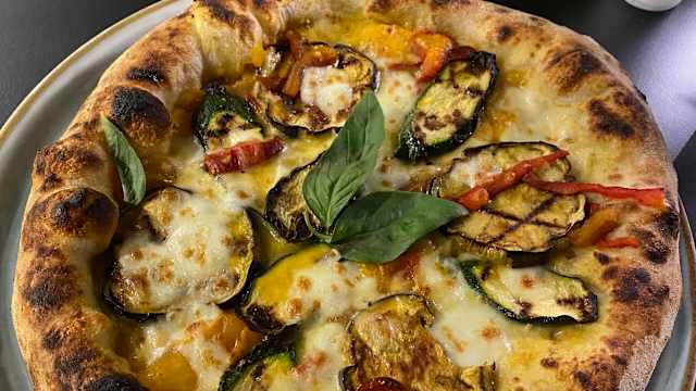 - Salsa di pomodoro, fiordilatte, tocchetti di melanzane fritte, uovo, // cotto monvero 100% italiano, crema di parmigiano, basilico, olio EVO.
