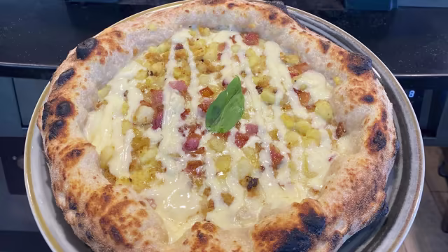- Salsa di pomodoro, fiordilatte, cotto monvero 100% italiano // basilico, olio evo.