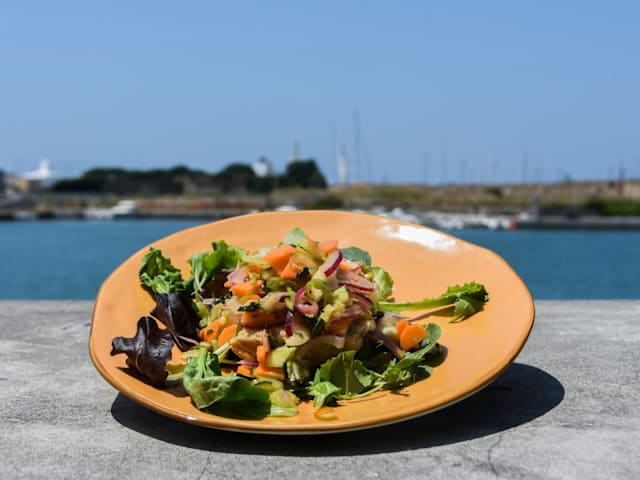 - (calamari, gamberi rosa locali, verdure )