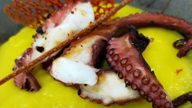 polpo arrosto su vellutata di patate zenzero e zafferano