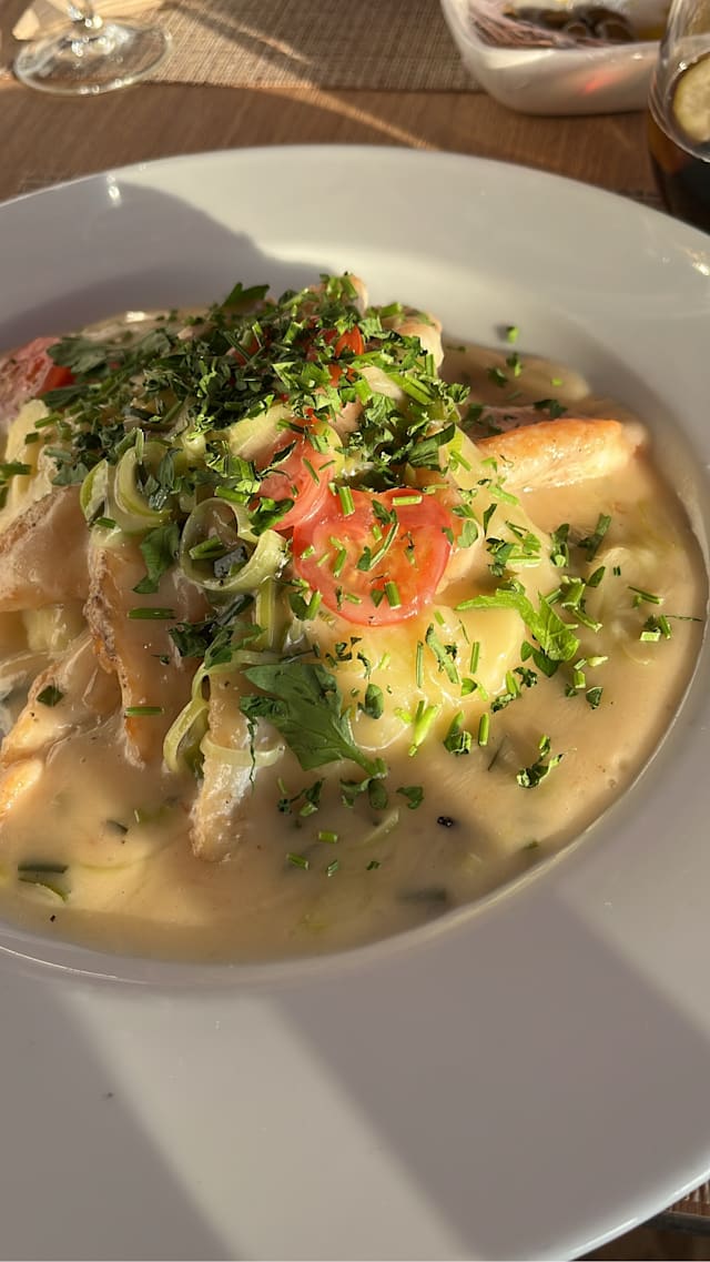 2.5/10All in all - would not come back. Food overpriced even with 30% off. My friend vomited after she ate the shrimps and risotto shrimps. The rest didn’t enjoy the food so much. Also the service was looking the whole time and took everything away every few minutes, we didn’t have our privacy and felt observed. Also my friend order meat and said she would like to have potatoes to the meat to not only eat meat. They they brought the meat with fries and extra potatoes. The waiter could have told her that she has anyways fries with the meat to not order extra or to exchange them.. fries were fatty as well. And you can’t pay with card !