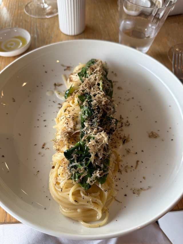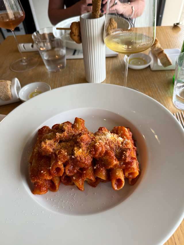 10/10Delicious and original pasta dishes, a strong wine list( we enjoyed a very decent Greco Di Tufo), welcoming, friendly and attentive service and a relaxed, contemporary and very attractive restaurant made for a very happy evening after a terrific performance at the opera.