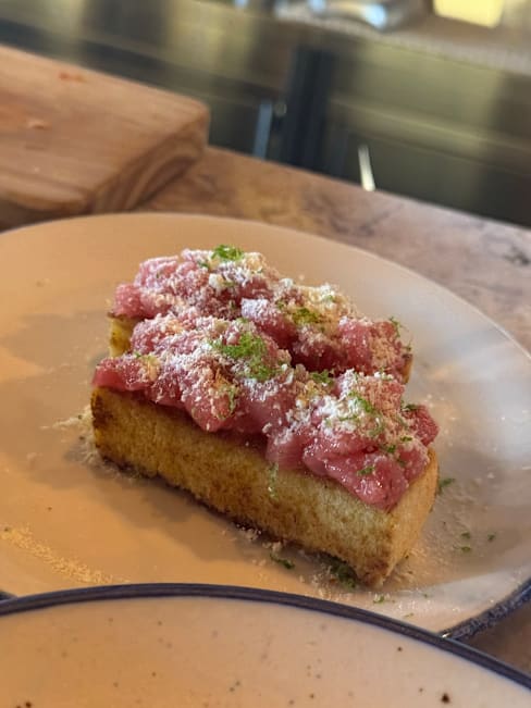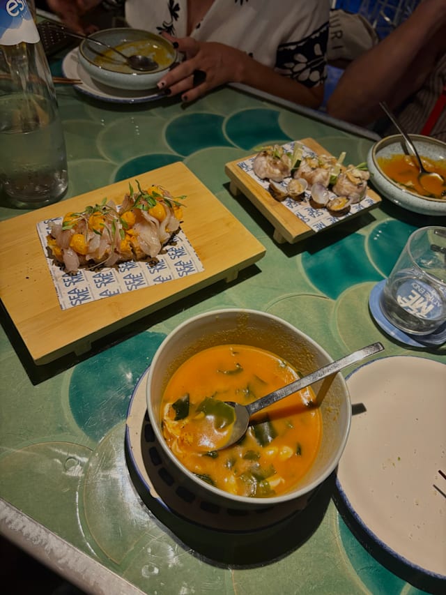 8.5/10The food was definitely the best with delicious, contemporary twists on Mediterranean cuisine. The octopus hot dog and the tuna tartare were standout dishes for us. Only downside: the seating arrangements. Stools/tables could work with the right proportions.