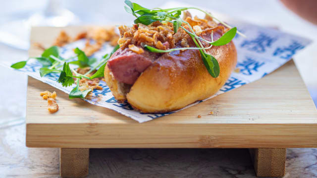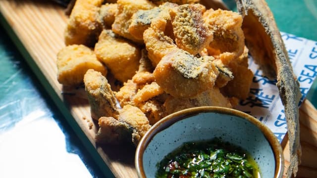 - Tártaro de atum em brioche tostado com chocolate branco e lima