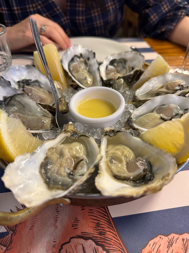 9.5/10We were late and our table booking would only have given us an hour, so we opted to sit at the bar. The bartender was excellent. She walked us through the menu. We were able to sample our wine before getting full pours. The oysters were fabulous. My sashimi was excellent. We enjoyed out dinner a lot.