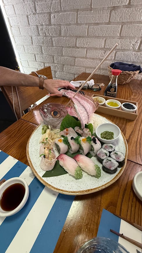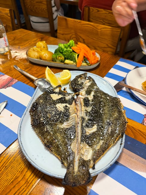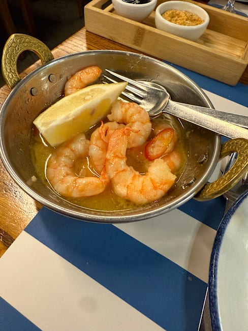 9.5/10Food was absolutely delicious! I'm so sad that on our trip, we experienced on the last night we're visiting! Will DEFINITELY be recommending this place to friends that visit Lisbon! Everything, starting with the bread with the olive oil and butter with calamari, was TASTY! Definitely try the red prawns cooked in garlic and chili! I also used that 'broth' for the fish that I picked out at their 'market'! Yes, it was that delicious! I had gotten their snapper... it won't disappoint! Our table also got the salmon sashimi and salmon in a California roll. Those were yummy also! The ambiance was excellent! Loved the vibe! The service wasn't too bad, though, there's room for improvement - our server could have been a bit more friendly. She wasn't rude, just could be more friendly considering part of the dining experience is the service... and it can impact how the food tastes :)