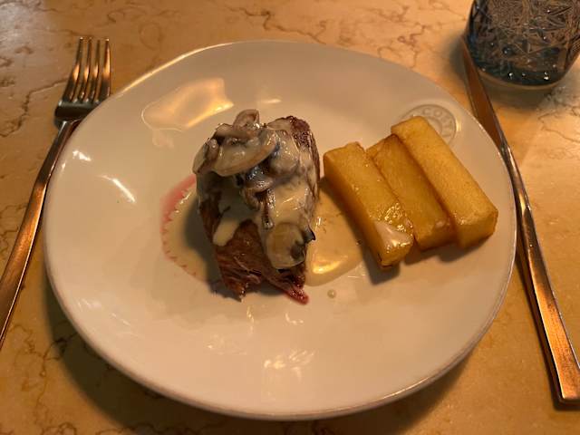- Our Loin Steak (220grs) and "Pont Neuf" Potato with Sauce "Marrare" or Moscatel and Mushrooms Sauce