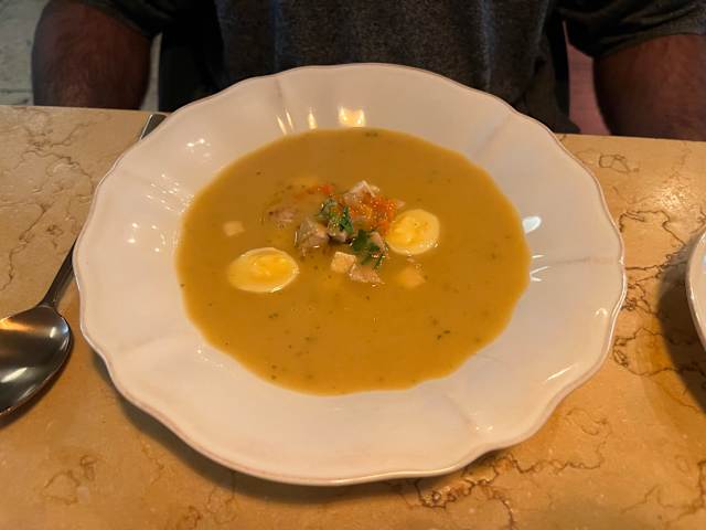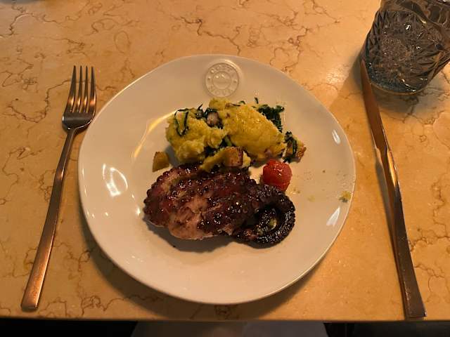 - Roasted Octopus, Sautéed Turnip tops with Corn Bread and Sweet Potato
