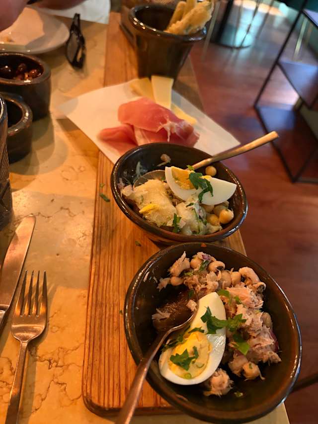 - Black Eyed Beans with Tuna, Codfish with Chickpeas, Rusks, Smoked Ham, Ilha Cheese and Fried String Beans