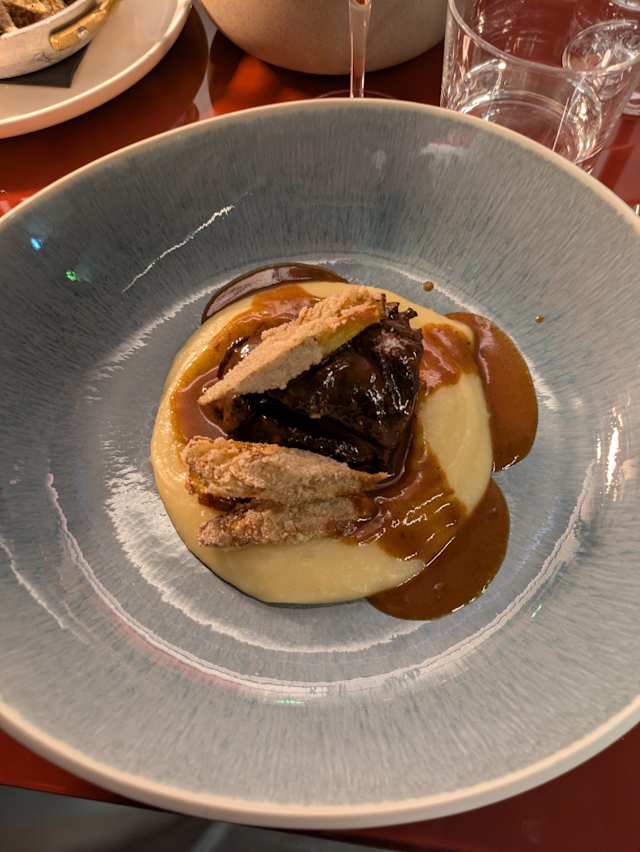 - Ravioli di burrata, burro ai crostacei aromatizzato agli agrumi e pesto di pistacchio