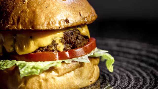 - Black angus irlandais, œuf, bacon aux saveurs de sirop d’érable, cheddar. Accompagné de frites