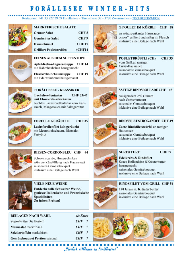 Seerestaurant Forellensee is identified as offering swiss cuisine.