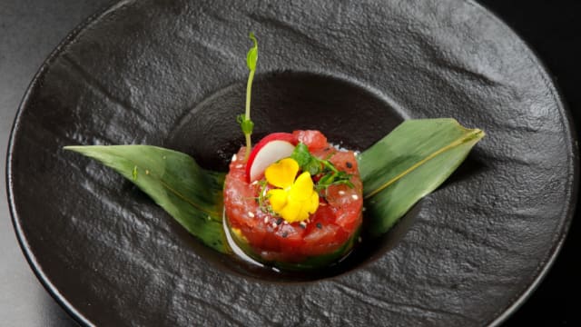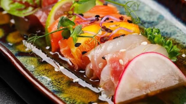 (*Limitato) Base di riso venere con misto di pesce ed alghe, sesamo