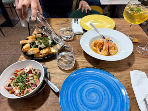 9.5/10Cannot fault the food and friendly approachable staff. The starters were incredibly fresh and tasty, we got the octopus salad, prawns and buffalo mozzarella - unreal! The staff were fun, charming and very attentive and made us feel very welcome, guiding us through the extensive menu. Only thing I think could be improved is the lighting, just felt a little cold, but personal preference I guess! If changed to a warmer tone and you can’t fault the place, would come again!
